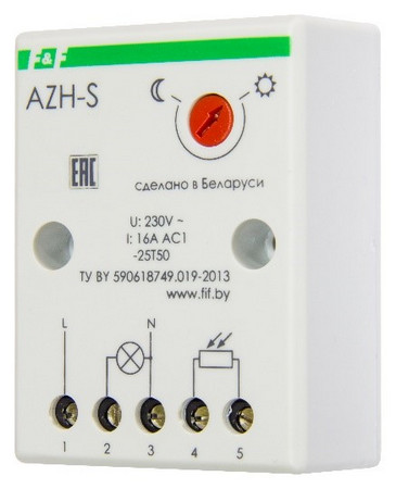Принцип работы основан на измерении уровня освещённости фотодатчиком (встроенным или выносным). Порог включения регулируется потенциометром.