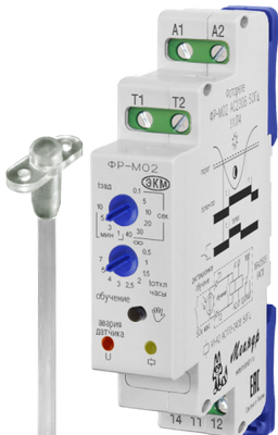 Фотореле ФР-М02 предназначено для автоматического включения и отключения освещения улиц, витрин магазинов, торговых залов, реклам, автостоянок и т.п. в зависимости от установленного порога уровня освещённости. Контроль уровня освещённости осуществляется выносным фотодатчиком ФД-3-1, поставляемым в зависимости от комплектации.