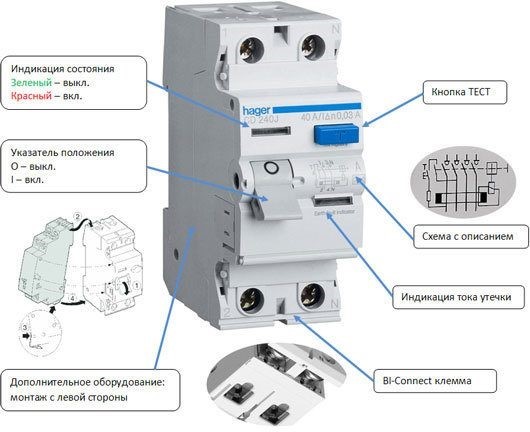 Устройства защитного отключения (УЗО) Hager - высококачественные модульные приборы, которые защищают от поражения электрическим током человека при повреждении изоляции и от возникновения пожара в электропроводке.